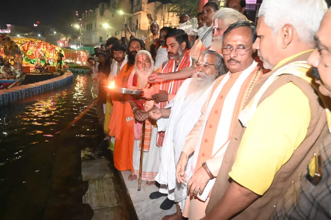 अयोध्या से चित्रकूट पावन भारत यात्रा आगमन पर चित्रकूट के घाट पर आयोजित विशाल संतों की सभा में मुख्य अतिथि के रूप में सम्मिलित होकर सभा को संबोधित किया। बाद में चित्रकूट घाट पर संतो के साथ आरती पूजन में सम्मिलित हुए। जिला के प्रशासनिक अधिकारियों के साथ काम दगिरि पर्वत की आरती स्थल पर हो रहे निर्माण का अवलोकन किया तथा आचार्य विराट जी द्वारा प्रारंभ की गई आरती कार्यक्रम में सम्मिलित होकर भारी संख्या में उपस्थित साधु संतों की उपस्थिति में सम्मिलित होने वाले श्रद्धालुओं को संबोधित किया।